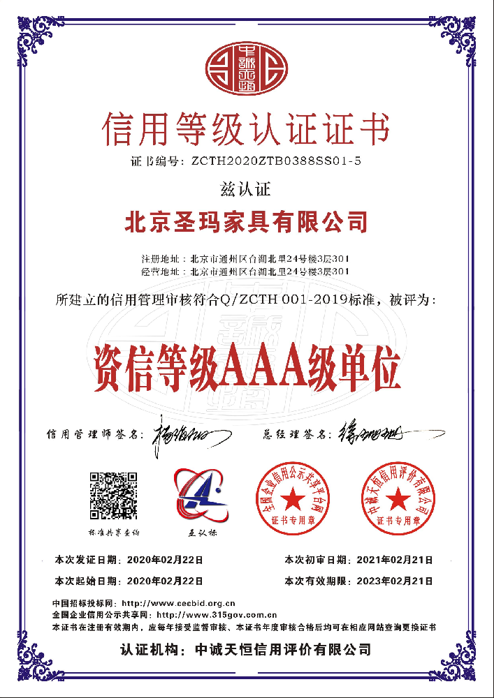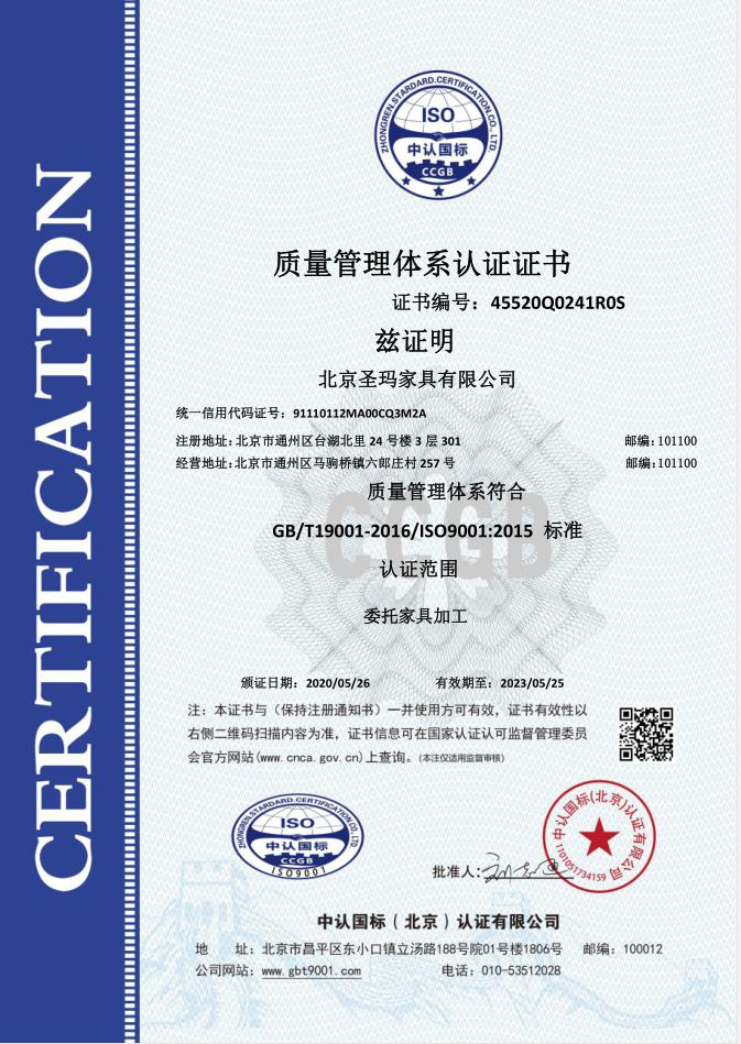 北京圣瑪家具有限公司是以設計研發(fā)、生產(chǎn)、銷售、服務為一體的專業(yè)化辦公家具制 造企業(yè);主要經(jīng)營辦公家具、校園家具、實驗室家具、酒店套房、全屋定制類等家具。 公司成立于 2017 年,生產(chǎn)基地位于天津市蘆臺經(jīng)濟開發(fā)區(qū)華澳盛世家具有限公司院 內(nèi),占地面積約 10000 平米,擁有員工 100 人左右,其中高級技術人員達 15%以上。 公司采用了南興、先達系列等先進生產(chǎn)設備,建立專業(yè)流水線,具備先進的生產(chǎn)及加 工能力。公司設有專業(yè)的產(chǎn)品設計部、運營部、質(zhì)檢部等,提供專業(yè)的 CAD 平面圖、立面 圖級效果設計圖紙。 使用優(yōu)質(zhì)的進口原材料及配件;嚴把進貨渠道,所用材料符合國家環(huán)保標準要求。款 式上依據(jù)人體工程學原理,追求多樣化的設計風格。按照 “ISO900/ISO14001 族標準” 的 要求,嚴格控制每一個環(huán)節(jié)。 并本著“以質(zhì)量求發(fā)展,向管理要效益,顧客滿意為焦點,持續(xù)改進,共筑偉業(yè)”的 宗旨方